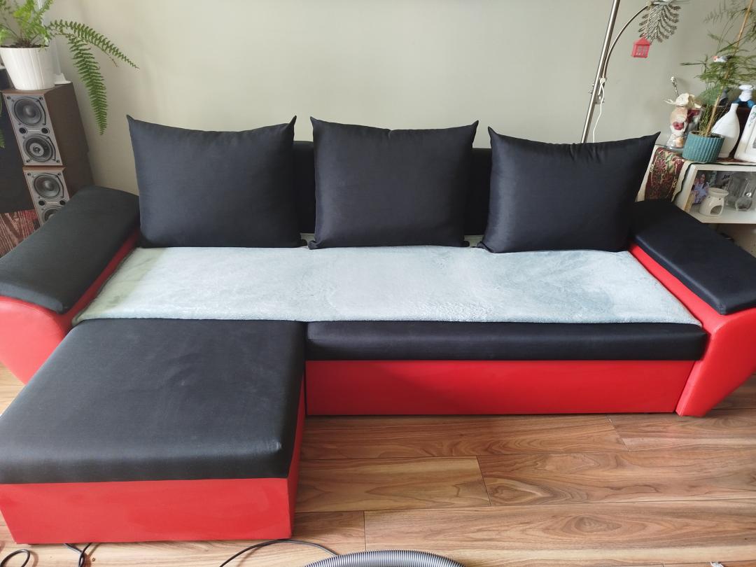 Sprzedam sofę z funkcją spania w bardzo dobrym stanie. Wymiary: szerokość 138 cm, długość 250 cm.
